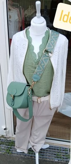 BOMBERS Lucas, blanche en broderie anglaise . Elle a un col et une fermeture éclair dorés, style décontracté