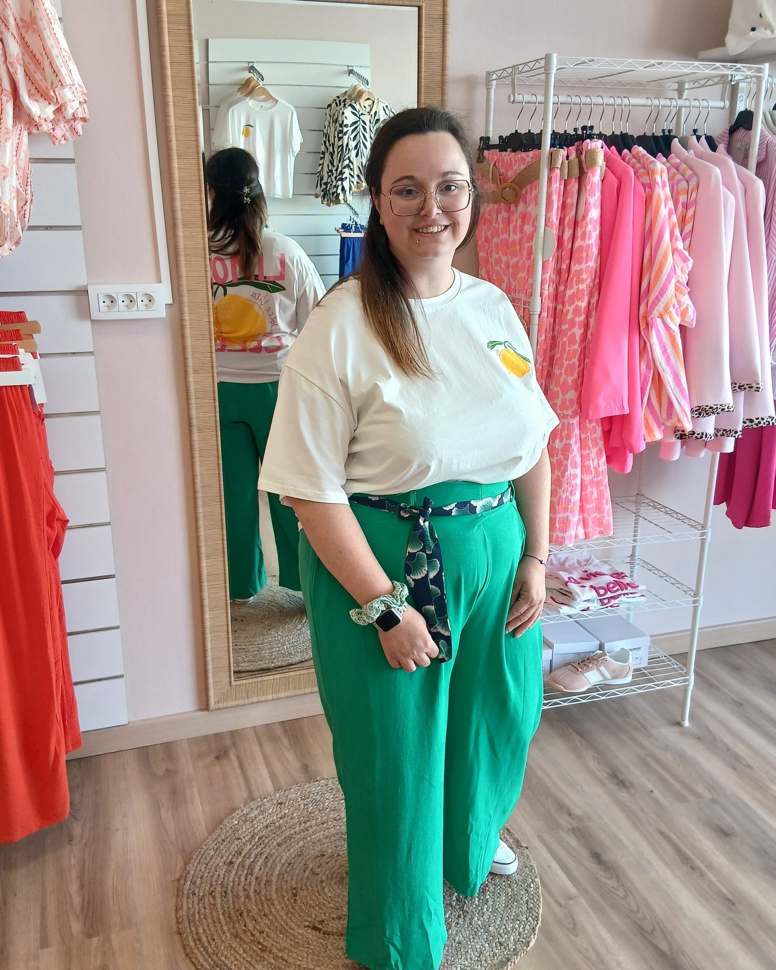Notre pantalon Baptiste fluide avec ceinture, disponible en rose, vert et orange !