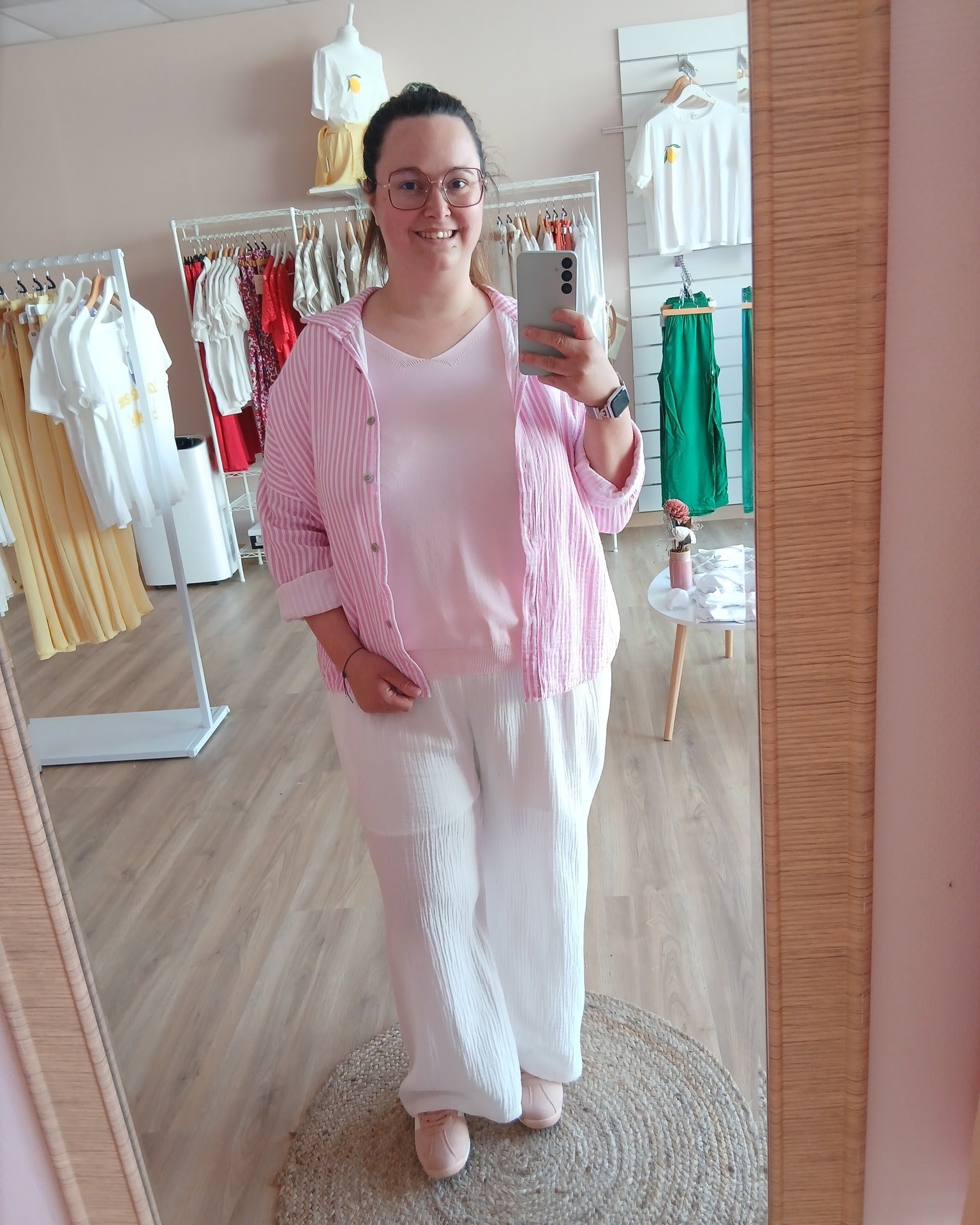 le pantalon JULIEN fluide en gaz de coton, disponible en blanc et bleu !