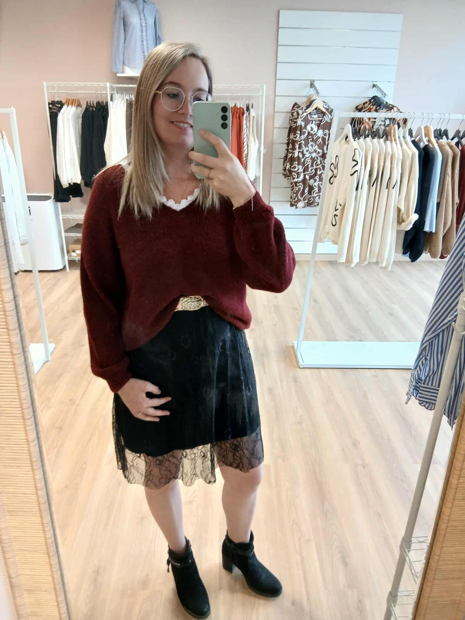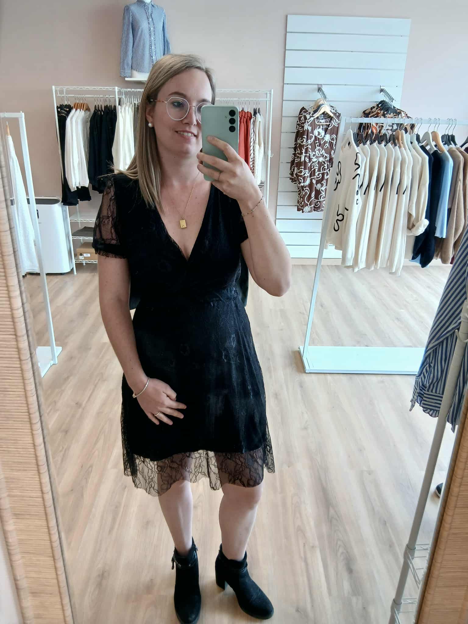 Découvrez la robe Sarah, élégante et noire, ornée de délicates détails qui subliment sa silhouette. Ses manches courtes apportent une touche de légèreté parfaite pour toutes les occasions. Cette robe allie raffinement et confort, idéale pour révéler votre style avec sophistication.