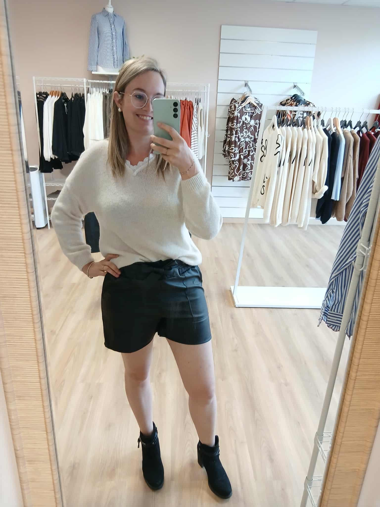 Adoptez un style audacieux avec le short ADAM en simili cuir noir. Sa coupe moderne et sa ceinture assortie soulignent la taille pour une allure élégante et affirmée. Idéal pour un look chic et contemporain en toute simplicité.