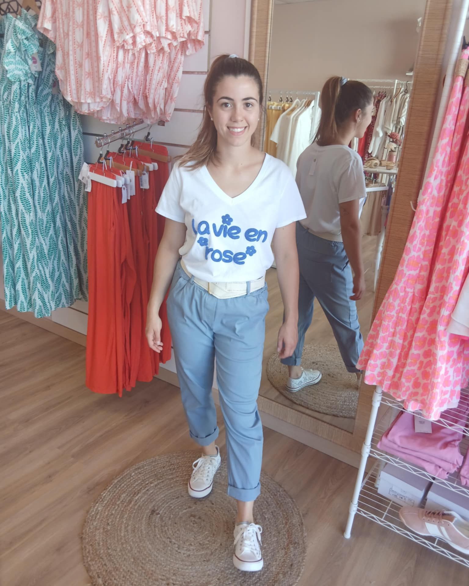 Affichez votre bonne humeur avec le T-shirt PAUL, orné de l’inscription « La vie en rose » en bleu roi éclatant. Confortable et stylé, il apporte une touche de couleur et de positivité à votre tenue quotidienne. Parfait pour illuminer vos journées avec simplicité et convivialité.